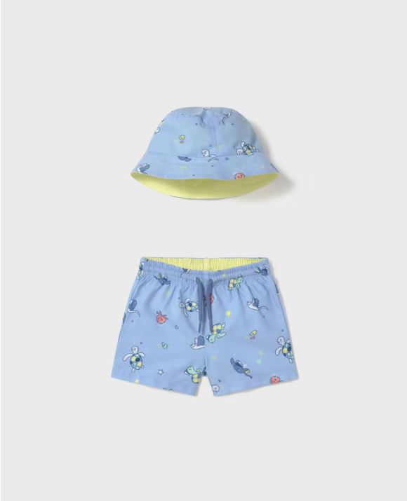 Conjunto bañador y gorro reversible protección solar bebé niño